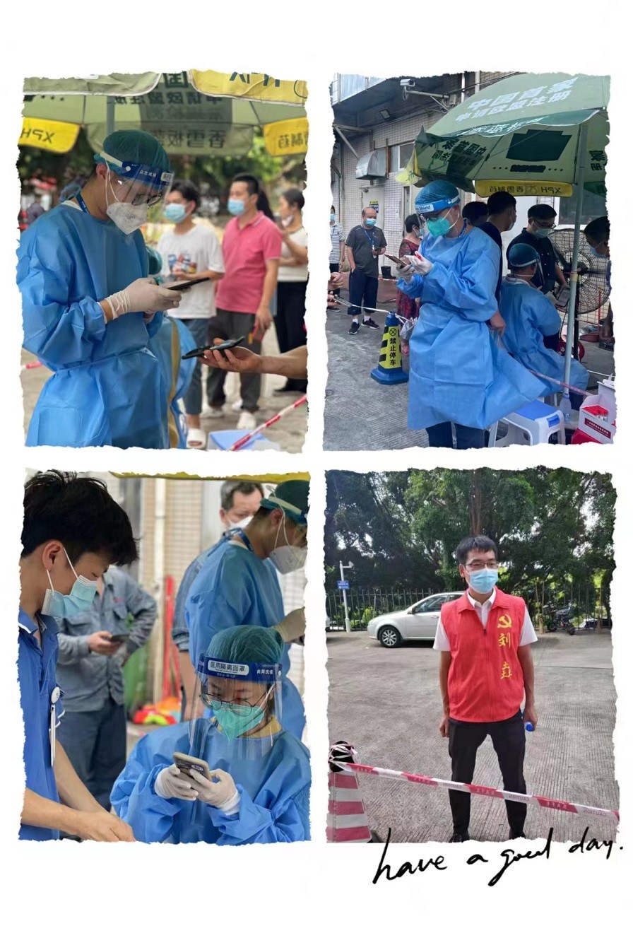 为起劲响应社区防控要求,,,,,充分验展党员先锋模范作用,,,,,7月18日新宝gg创造奇迹科技党支部组织党员同志加入疫情防控事情,,,,,支部党员刘垚、于园、胡仁涛同志及生长工具王淮边同志加入了疫情防控事情,,,,,为核酸检测扫码挂号,,,,,维持秩序。。。。。。各人排队经由的时间,,,,,都没有发明漂亮的于园同志,,,,,潇洒的胡仁涛同志,,,,,帅气的王淮边同志变身臃肿的大蓝,,,,,在大电扇一股股热风中挥汗如雨,,,,,几个小时下来腰酸背痛,,,,,人都有点虚脱了。。。。。。可是能够为深圳的防疫事情尽到一点力量,,,,,他们年轻的脸上尽是知足的笑容。。。。。。今天的核酸点飘扬的是新宝gg创造奇迹科技党支部的旌旗。。。。。。